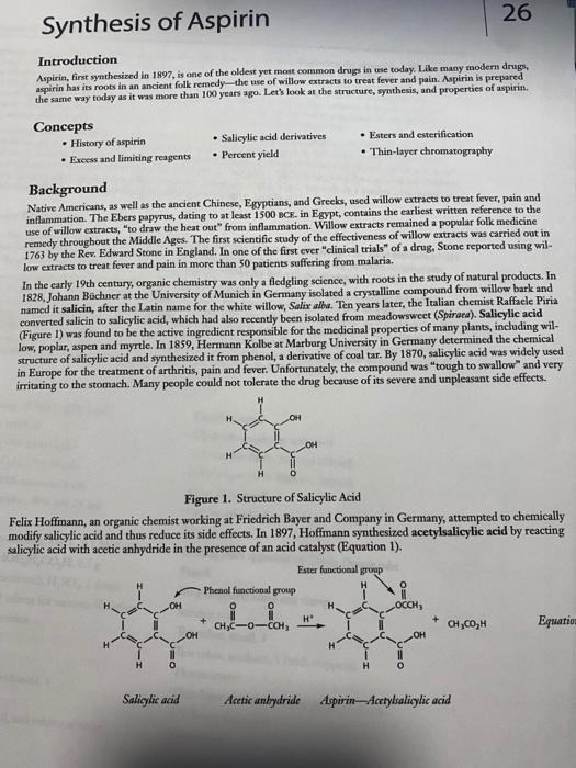 Solved 26 Synthesis Of Aspirin Introduction Aspirin First Chegg Com