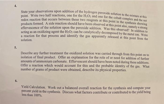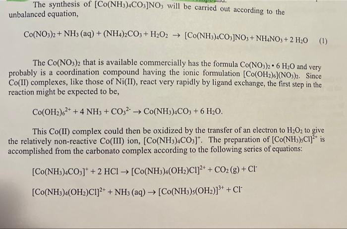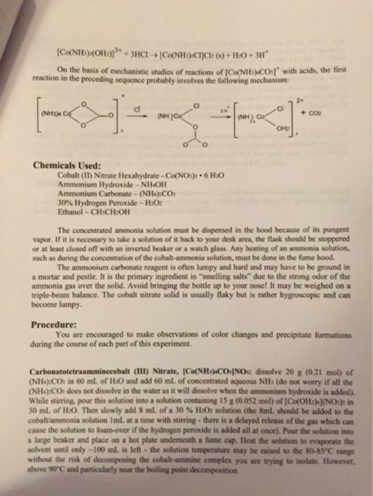 Solved Inorganic Chemistry Lab Synthesis Of Chegg Com